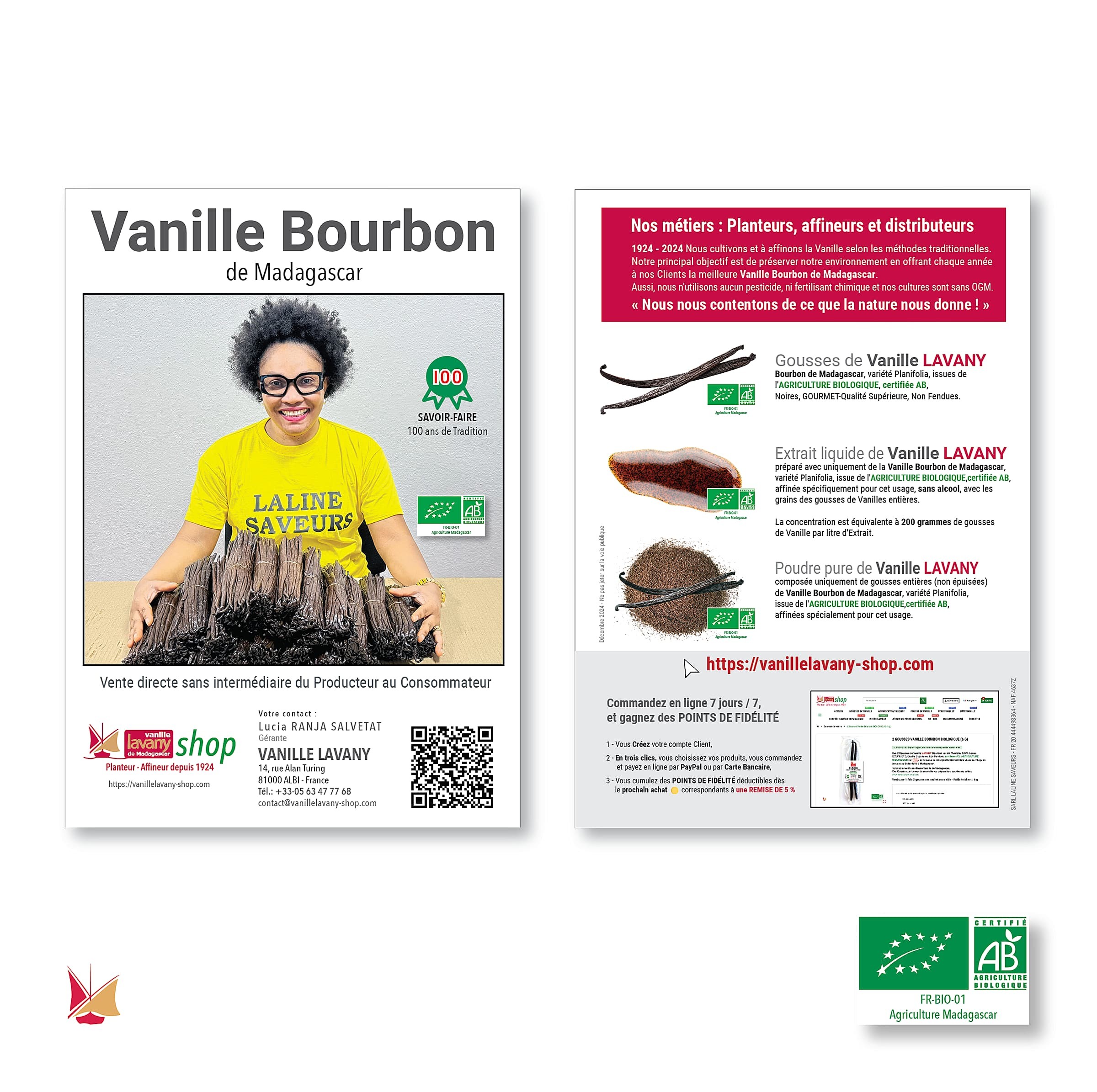 - 25 Flyers 10 x 15 cm présentant les 3 produits de la gamme Vanille LAVANY